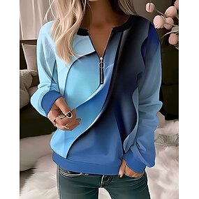 Női Negyed Zipper Pulóver Pulóver Virágos Pillangó Kényelmes Sport Negyed Farmer Kék Fehér Tengerészkék Elegáns Vintage Divat Fél Hosszú Ujjú Felső Kényelmes Lélegző Puha Anyag