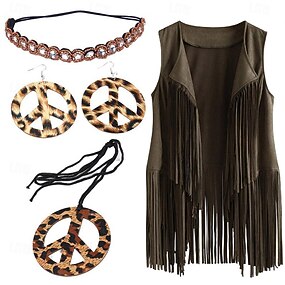 Retró 1960-as évek 1970-es évek Kiegészítő készlet Velúr mellény Hippi Rojt Jelmez Női Pride Parade Büszkeség hónapja Felnőttek Mellény Fülbevalók Nyakláncok