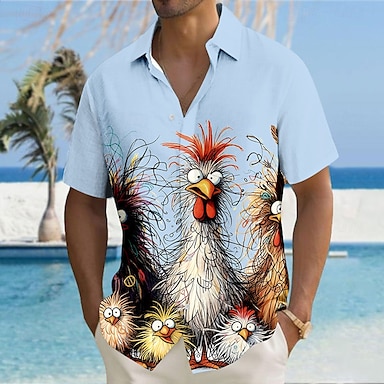 Férfi Állat csaj Vicces Ing Gombos póló Rövid ujjú Alkalmi divat Utcai öltözék Vakáció Szabadság Nyár Térfogatcsökkenés 3D nyomtatás galléros ingek Első egy zseb Medence Fekete Fehér Sárga Bíbor
