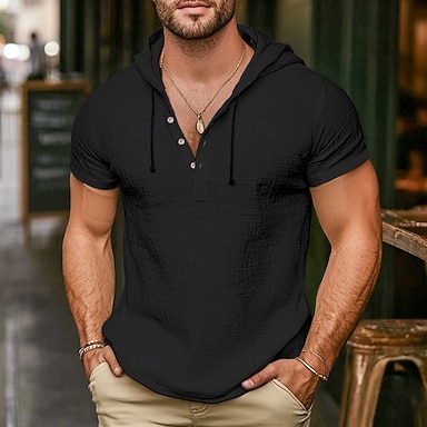 Férfi Ing Vászon ing Nyári póló Strandruházat Kapucnis ing Tömör szín Vakáció Utca Fekete Fehér Égszínkék Lóhere Rövid ujjú Kapucni Nyár Tavasz Ruházat Zseb