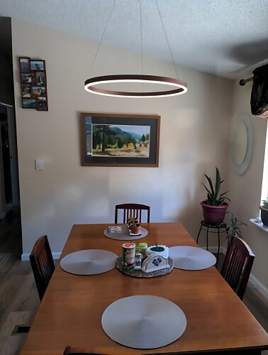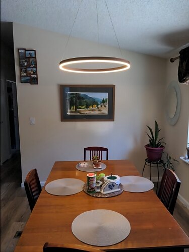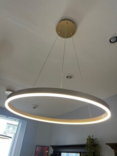 Super simple to install and beautiful looking!this modern LED ring chandelier looks so nice in my living room, it shines beautifully giving like a magical light when on, and when off look very pretty too! I love how it reflects the sun during the day! Super simple to install and beautiful looking!this modern LED ring chandelier looks so nice in my living room, it shines beautifully giving like a magical light when on, and when off look very pretty too! I love how it reflects the sun during the day!