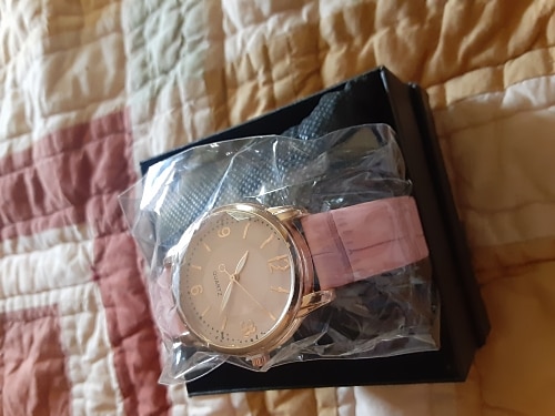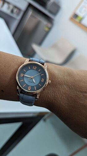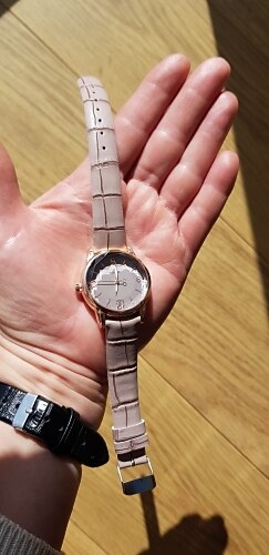 Very happy I took a chance to order this watch. It’s very pretty and will be a nice addition to my wardrobe. I can hear the second hand ticking with movement but not bothersome at all. I do wish the closure silver was the same color as the watch face surround rose gold. Easy to set the time and wind to start it. It’s keeping time perfectly. I bought 3 different watches for my wardrobe ~ so glad I did! Very happy I took a chance to order this watch. It’s very pretty and will be a nice addition to my wardrobe. I can hear the second hand ticking with movement but not bothersome at all. I do wish the closure silver was the same color as the watch face surround rose gold. Easy to set the time and wind to start it. It’s keeping time perfectly. I bought 3 different watches for my wardrobe ~ so glad I did!