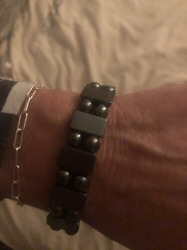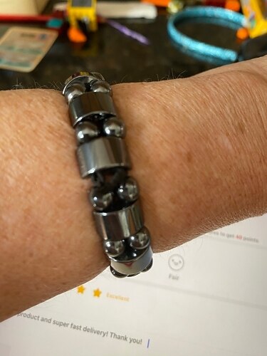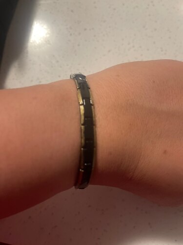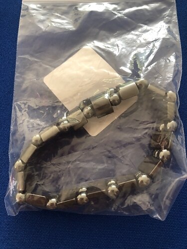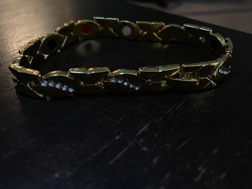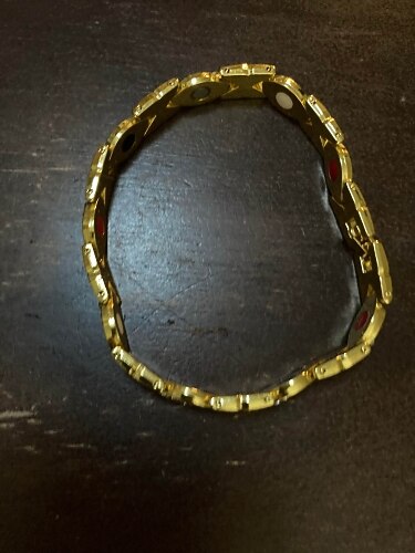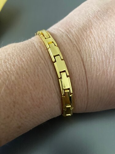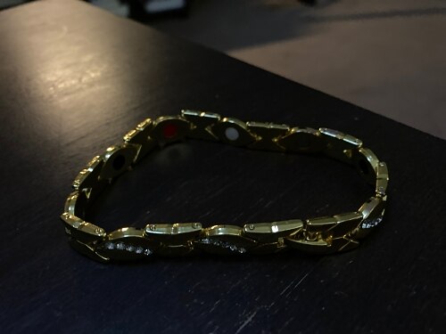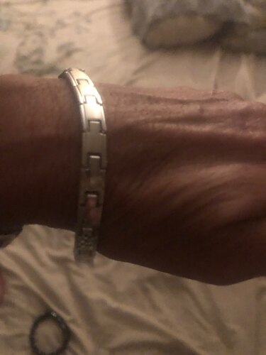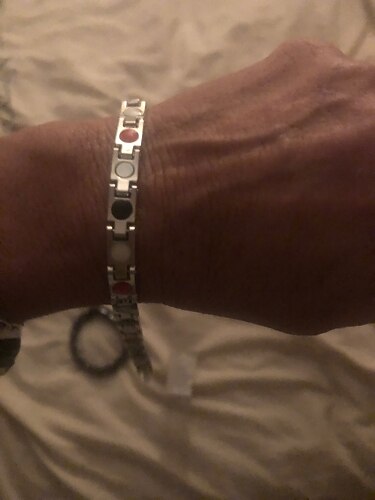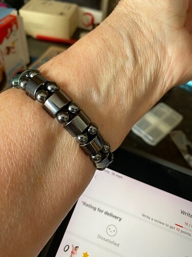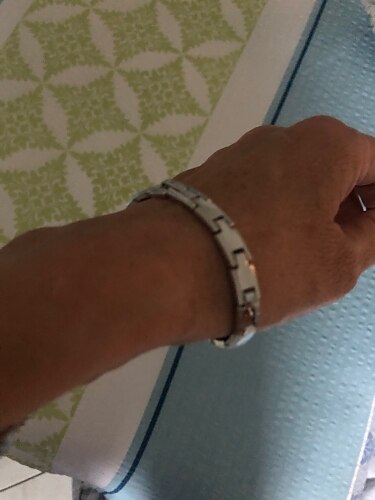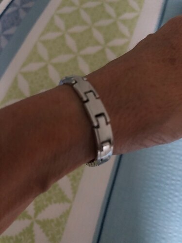 Braccialetto di materiale lucido. Un po’ largo per il braccio di una donna che porta la M. Non sò se funzionerà visto che non aderisce al braccio ma è bello a vedersi. Dovesse funzionare aggiornerò la recensione.