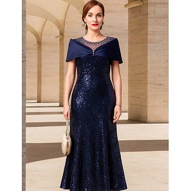 Fodros Oszlop Boka Hossza Partiruha Koktélruha Esküvői Vendégruha Az Anyának a Menyasszonyhoz Rövid Ujjú Kerek Nyakkal Elegáns Vintage Parti Spandex Béleléssel