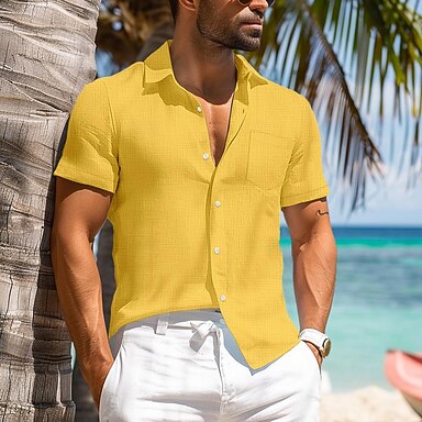 Férfi Ing vászon ing Bandgalléros ing Nyári póló Strandruházat Hawaii ing Tömör szín Vakáció Curise Fekete Fehér Sárga Arcpír rózsaszín Rövid ujjú Letűrhető gallér Tavaszi nyár Ruházat Kollázs