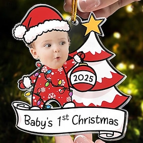 Személyre szabott fénykép karácsonyi díszek baba első karácsonya akril 2D egyedi baba arc karácsonyfadíszek xmas dekoráció függő pendant ajándékok