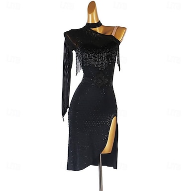 latin tánc ruha bojtos strasszos női előadás hosszú ujjú salsa verseny ruhák rumba táncruházat ruházat