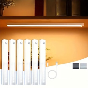 Confezione da 6 luci sottopensile, luci LED con sensore di movimento, ricaricabili tramite USB, luci di lettura notturna per guardaroba, cucina, scale e librerie da 20/30 cm