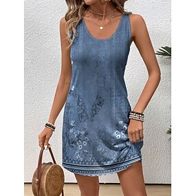 Per donna Mini Abito Vestito Estivo Abito a trapezio Abito Estivo Vacanza Casual Vestibilità regolare Ombre Floreale Grafico Senza Maniche Collo a U Scollo Tondo Bianco e nero Marrone scuro Rosso Blu