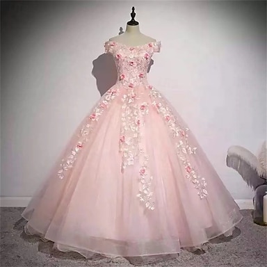 Abito da ballo Lunghezza al pavimento Abiti da Ballo Principessa Sbuffato Manica Corta Scollo a V Performance Festa dei 18 anni Tulle con Applicazioni