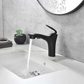 Lavandino rubinetto del bagno - Doccetta estraibile Galvanizzato / Finiture verniciate Installazione centrale Una manopola Un foroBath Taps