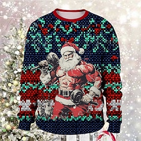 Stampa 3D 3D Natale Manica a Vescovo Maglione Felpa divertente di Natale Babbo Natale Divertente per Coppia Per uomo Per donna Adulti Stampa 3D per Natale Carnevale Feste Festival