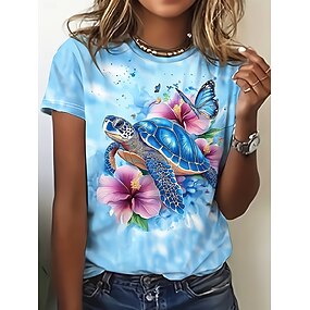 Per donna Maglietta Stampato Grafico Animale Oceano Elegante Classico Casual Manica Corta Girocollo Top Regolari Quotidiano Blu Nero Bianco Giallo Rosa Estate Primavera