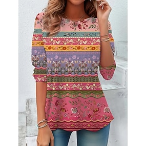 Per donna Maglietta Stampato Floreale Grafico Sfumatura Elegante Vintage Classico Manica Lunga Girocollo Scollo a V Top lunghi Quotidiano bianco rosso Rosa Arcobaleno Estate Primavera Autunno