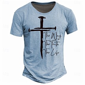 Per uomo Croce Maglietta Manica Corta maglietta Stampa 3D Girocollo Camicia Retrò Vintage Casual Streetwear Casuale Blu chiaro Cachi Grigio Primavera & Estate Abbigliamento S M L XL XXL XXXL