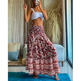 Per donna Bohemien Moda Casual Maxi Vita Alta Gonne Floreale Stampato Micro-elastico Quotidiano Streetwear Rosso Blu marino Verde Estate Poliestere