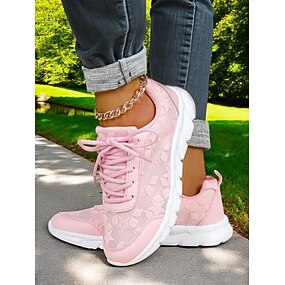 Scarpe da corsa imbottite rosa da donna: scarpe sportive leggere con lacci, ideali per camminare, per l'uso quotidiano e per uno stile sportivo casual.