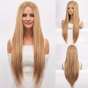 Parrucca Sintetica Wicked Ondulato Riga centrale Fatto a macchina Parrucca Lungo Biondo Capelli Sintetici Per donna Biondo