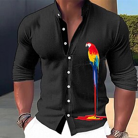 Per uomo Pappagallo Camicia Camicia con Bottoni Manica Lunga Moda Streetwear Designer All'aperto Casuale Quotidiano Estate Primavera Autunno Collo alla coreana Stampato Nero Bianco Blu Verde Cachi
