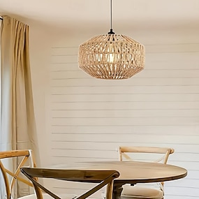 Lampada a sospensione a soffitto in corda di canapa, paralume intrecciato a mano, vimini in rattan, lampada a sospensione intrecciata a mano per soggiorno, camera da letto, sala da pranzo, cucina