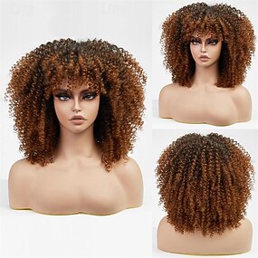 Parrucca Riccia per Donne di Colore Parrucca Corto Riccia Morbida con Frangia Parrucche Cosplay di Halloween