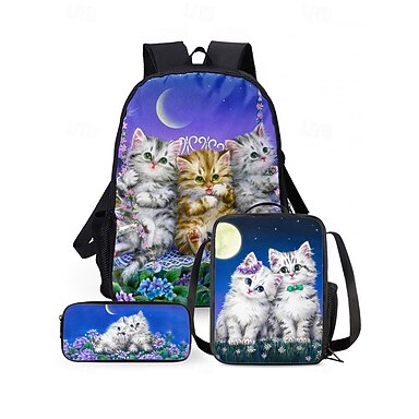 Set di 3 zaini per bambini a forma di gatto di Kayomi Harai: grazioso zaino scolastico con borsa per il pranzo e astuccio, scomparto isolato e ampia capacità per l'uso scolastico, in viaggio o per picnic delle bambine.
