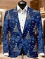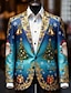 Natale Per uomo Grafico Giacca blazer Cappotto Confortevole Traspirante Artistico Casual Abbigliamento da sera Quotidiano Festival Stampa 3D Bottoni Autunno & Inverno Dentellato Manica Lunga Blu