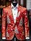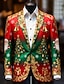 Natale Per uomo Albero di Natale Giacca blazer Confortevole Artistico Casual Abbigliamento da sera Quotidiano Festival Bottoni Stampato Primavera Autunno Inverno Dentellato Manica Lunga Rosso 1 Rosso