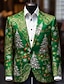 Natale Per uomo Albero di Natale Giacca blazer Confortevole Artistico Casual Feste Abbigliamento da sera Quotidiano Stampa 3D Bottoni Autunno & Inverno Dentellato Manica Lunga Rosa Viola Verde