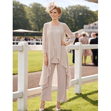 Tuta Completo Pantalone Tre Pezzi Lunghezza al pavimento Abito da cerimonia per signora Manica Lunga Scollo a Barca Elegante Taglie Forti Con Stola Formale Ospite di nozze Chiffon Con Stola con