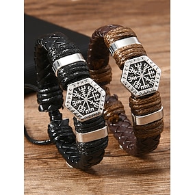 Bracciale da uomo in similpelle con rune vichinghe e simbolo Vegvisir – polsino intrecciato regolabile in stile nordico per uomo, ideale come regalo, per abiti casual e per festival