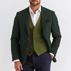 Per uomo Blazer in Tweed Colletto ad incastro Retrò Ufficio Spina di Pesce Blazer Marrone Verde Grigio scuro Vestibilità standard Monopetto Due Bottoni