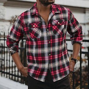 Per uomo Camicia Camicia di flanella Camicia a quadri Giacca camicia Giacca-camicia Quadri All'aperto Abbigliamento quotidiano Bianco Rosso Blu Manica Lunga Bavero Autunno & Inverno Abbigliamento