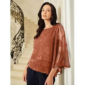 Per donna Camicia di Pizzo Blusa Top Eleganti Top in chiffon Taglio Orlo asimmetrico Tinta unica Fiore Elegante Essenziale Casual Manica 3/4 Manica a Campana Scollo a Barca Top Regolari Quotidiano