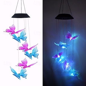 Lampada solare a forma di farfalla, carillon di vento, luce RGB che cambia colore, lampada da giardino esterna impermeabile, per balcone, giardino, parco, albero, lampada a sospensione