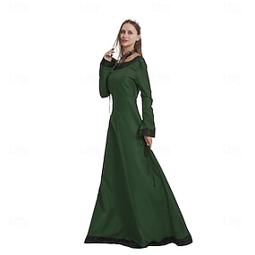 Retrò Vintage Medievale Rinascimento Lunghezza al pavimento Vestito Lunghe Strega Elfo Costume Per donna Halloween Carnevale Mascherata Fiera Rinascimentale Festa a tema retrò Adulti Vestito Tutte le