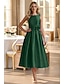 Linea ad A Lunghezza Tè Abiti da Cocktail Abiti da festa Elegante Senza Maniche Senza Spalle Festa in giardino Matrimonio Raso con Pieghe