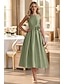 Linea ad A Lunghezza Tè Abiti da Cocktail Abiti da festa Elegante Mezza Manica Scollo a V Formale Ospite di nozze Raso con Tasca