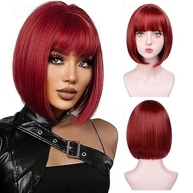 parrucche bob corte per donne parrucca bob con frangia parrucca bob liscia super morbida e facile da indossare, parrucca sintetica colorata per tutti i giorni, cosplay