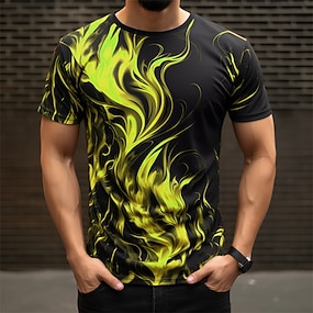 Festival musicale Per uomo Grafico Fiamme dell'Inferno Fiamma fuoco Maglietta Manica Corta maglietta Stampa 3D Girocollo Camicia Quotidiano Designer Casual Sport all'Aperto Ferie Uscire Giallo