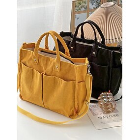 borsa tote in velluto a coste da donna con più tasche, borsa a tracolla vintage casual, borsa a tracolla di grande capacità per l'uso quotidiano, lavoro, viaggi e shopping