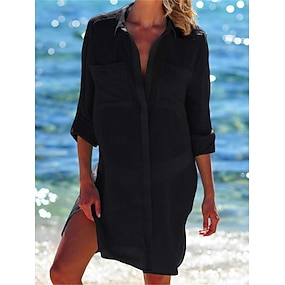 Per donna Mini Abito Abito Bianco Copricostume Essenziale Spiaggia Vacanza Ferie Vestibilità comoda Manica Lunga Colletto a Camicia Blu Nero Bianco Blu marino Estate