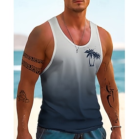 Per uomo Canotta Maglietta smanicata Canottiera Maglietta senza maniche Senza Maniche Girocollo Estate Sfumatura Albero di Cocco Moda Designer Essenziale Stampato Vacanza Streetwear Uscire Blu