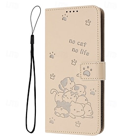 telefono Custodia Per Samsung Galaxy S25 S24 S24 FE S23 S22 S21 Ultra Plus A55 5G A35 5G A25 A15 Custodia Portafoglio con Supporto Protezione Completa Con Cinturino da Polso Gatto Retrò TPU Pelle PU