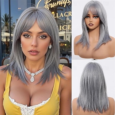 Parrucca da uomo corta grigio argento, parrucche sintetiche a strati naturali per uomo, per Halloween quotidiano.
