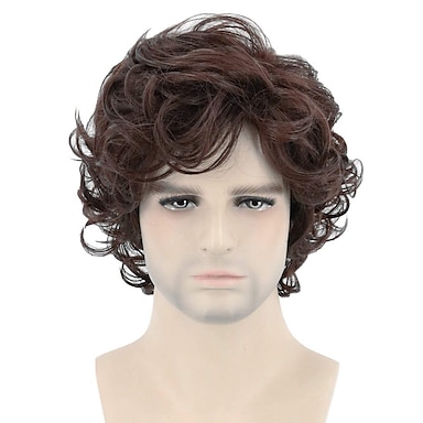 parrucca sintetica parrucca riccia con parte laterale corta marrone chiaro marrone scuro nero capelli sintetici uomo cosplay party fashion nero marrone scuro
