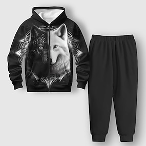Da ragazzo 3D Lupo Set felpa con cappuccio e pantaloni della tuta Manica lunga Stampa 3D Primavera Autunno Attivo Di tendenza Fantastico Bambino 3-12 anni Con cerniera Con cappuccio Esterno Da mare