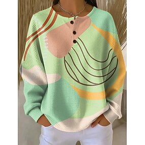 Per donna Felpa Pullover Geometrico Astratto Casual Manica Lunga Girocollo Top Regolari Blu Nero Bianco Giallo Rosa Primavera Autunno