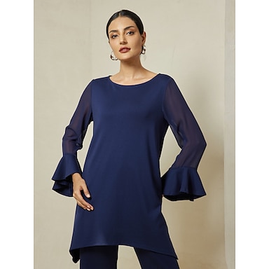 Per donna Blusa Chiffon Modal Colore Solido / Tinta Unita Abbigliamento quotidiano Data Uscire Manica del polsino svasato Manica a rete Nero Manica Lunga Elegante Elegante & Lussuoso Casual Quotidiano