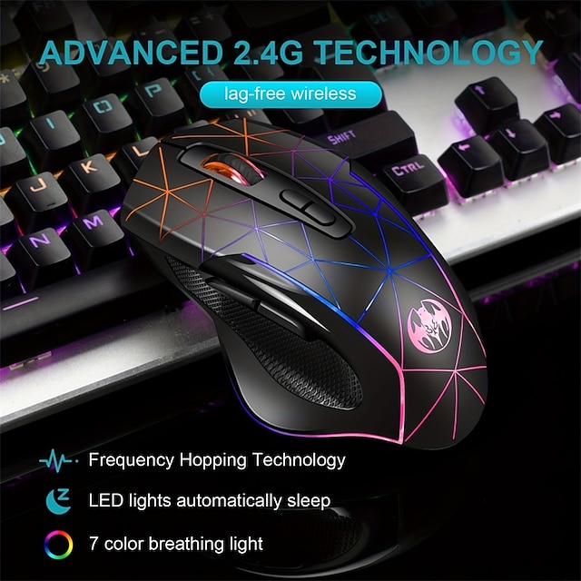Tipo Mouce:Mouse da gioco,Tipo di sensore:Ottico,Numero di tasti del mouse (pcs):7,DPI del mouse (dpi):3200,Illuminazione:Luce respirante a led,Connessione:Senza fili,Caratteristiche del mouse:Luminoso,Livello DPI regolabile:2 livelli DPI regolabili,Numero di pulsanti programmabili:2 tasti programmabili,Dispositivi compatibili:Laptop,PC,Tablet,MacBook,